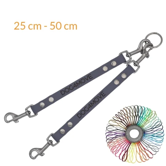 Die Leinenverbindung TINY wird in verschiedenen Längen angeboten, von 25 cm bis 50 cm, Diese sind auf die speziellen Bedürfnisse jedes Hundeduos abgestimmt.